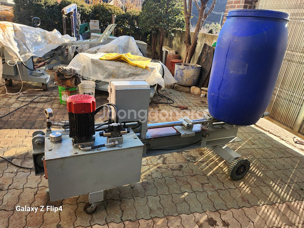 목공방에서 사용하던 톱밥압축기(펠렛제조기) 무한반복 모터380v 삼상5마력 실린더내경100 로드경50 행정600 펠렛50 몸체길이2500 010-3480-2213