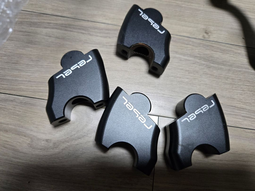 혼다 레블500에서 탈착한 핸들 라이저 블록 세트 판매합니다. ✔ 핸들바 높이를 올려주는 업 라이저 용도 ✔ 순정 핸들바 클램프 아래에 장착하는 방식 ✔ 핸들바는 포함되지 않으며, 라이저 블록만 판매합니다 ✔ 볼트온 타입 (순정 볼트 재사용 구조) 사용 후 탈착한 제품으로 파손·변형 없고 장착 및 사용에 문제 없습니다. 레블300 / 레블500 호환 📦 구성품 핸들 라이저 블록 세트 (사진 구성 전부) ※ 핸들바는 포함되지 않습니다 직거래 / 택배 모두 가능합니다. 문의 주세요!
