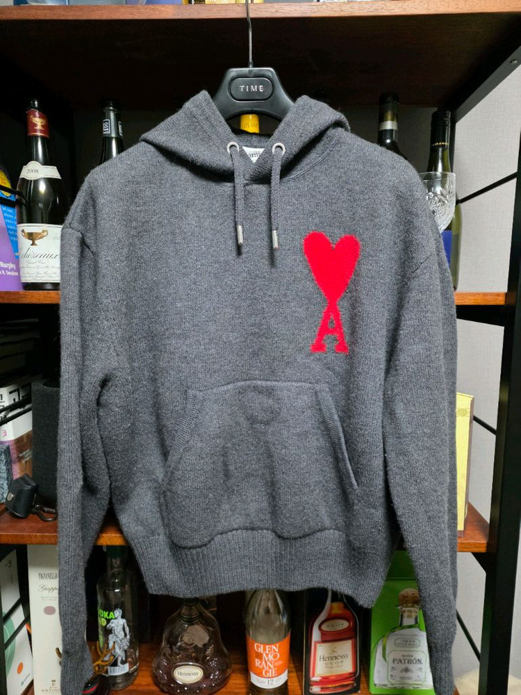 아미 빅하트 울 후드 니트 2회 착용하였고 전체 상태 좋아요. M사이즈, 국내 100