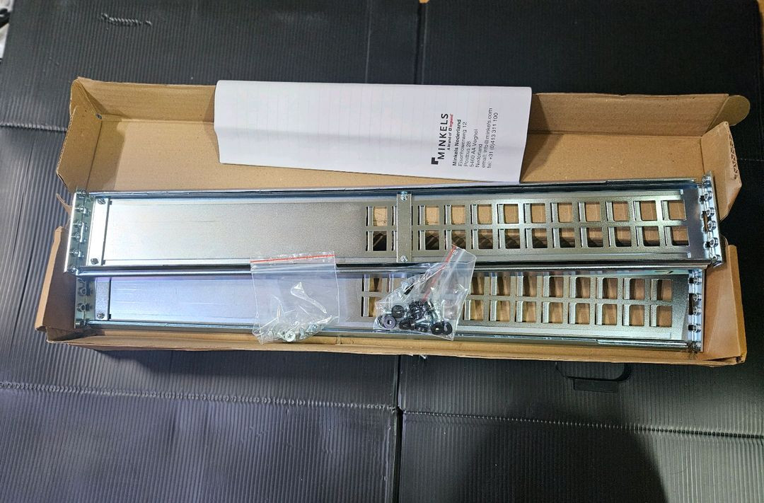 [판매] Minkels 서버 랙 가이드 레일 (2U/600-850mm) 미개봉/신품급 1. 제품 정보 브랜드: Minkels (A brand of Legrand, 네덜란드산) 모델명: A34V.600-850-UNI-S 제품명: Corner guide rail 2U (M5 mounting holes) 주요 특징: * 600mm ~ 850mm까지 길이 조절이 가능한 가변형 레일입니다. 2U 높이 규격이며, M5 장착 홀을 지원합니다. 설치용 마운팅 자재가 포함되어 있습니다. 2. 제품 상태 상태: 신품/미개봉 (사진 촬영을 위해 박스만 확인한 상태입니다.) 원산지: 네덜란드 (The Netherlands) 3. 판매 가격 판매가: 40,000원 3개 있습니다.