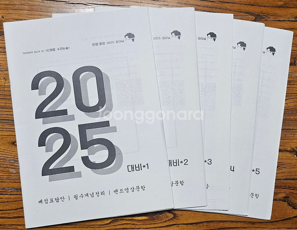 총 5권입니다 책 구성은 파이널 모의고사 배점표/정답, 빈출주제&필수문항, 최신기출 필수훈련 이렇게 3개 항목으로 구분되어 있습니다 파이널 모의고사 배점표/정답는 문제는 없고 풀이만 있지만 빈출주제&필수문항, 최신기출 필수훈련은 사진처럼 문제와 풀이가 있습니다 1권 기준으로 빈출주제&필수문항 13~31페이지 최신기출 필수훈련 33~49페이지로 되어 있어 논술 문제 연습에 적합합니다 ( 일부 연필로 푼 문제 있지만 주관식이라 크게 공부에 지장은 없지 싶습니다) 택배비 2000원 별도이고 구매하시면 집 근처 씨유편의점으로 보내드립니다 문의 0104303삼삼일육입니다