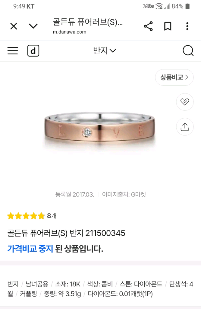 개인정보(거래정보)를 주고받는 행위는 사기에 노출될 수 있으므로 즉시 중고나라로 신고해 주세요골든듀 퓨어러브(s) 반지 12호 단종 제품 겹으로 바깥은 로즈골드 안쪽은 백금이라 두께가 좀 있어요 밴드 폭은 3mm정도 다이아 1p 옆에서 보면 꽃모양이라 귀여워요 단품입니다 사용 제품이라 기스는 있지만 깨끗한 편입니다 직거래 4호선라인 사당이하 가능해요