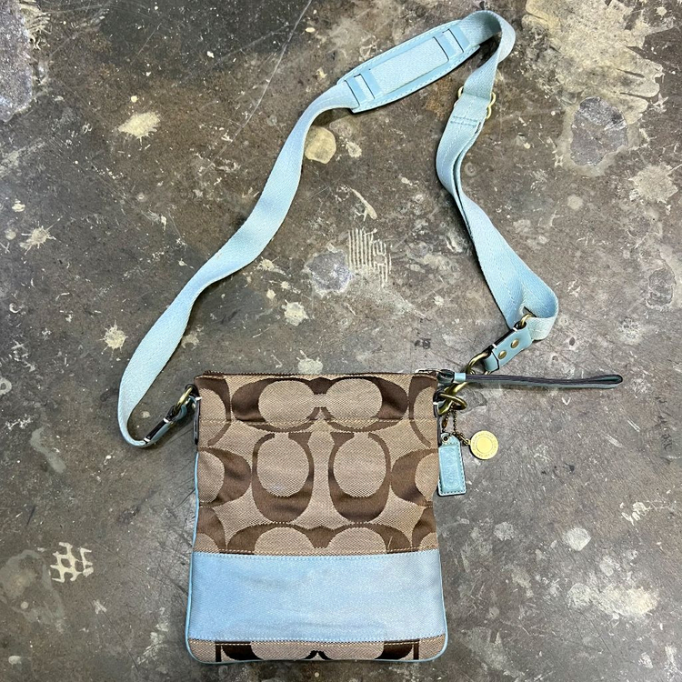 479a20 코치 시그니처 캔버스 크로스백입니다. 은은한 하늘색 포인트 색상이 매력적인 가방입니다. 가볍게 들고 다니기 좋은 사이즈입니다. 디자인이 너무 좋은 가방 입니다 컬러 감도 너무 예쁘구요 깔끔하면서 호불호 없이 누구에게나 잘 어울리는 가방이에요 수납공간도 잘 나뉘어져 있구요 가로 19 세로 22cm 입니다 데일리로 활용해서 들기 너무 좋아요 가방이 많아 정리하면서 판매합니다 택배는 반품 안되고 착불 선불은 4000원 추가입니다 구매하실 분 만 연락주세요 제주 및 도서지역 택배는 7000원 추가에요 미처 못본 오염이나 흠결 있을수 있어요 너무 민감하신분은 구매삼가주세요