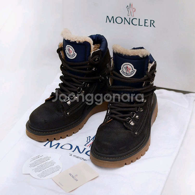 몽클레어 (Moncler) 이지드 (EGIDE) 양모 시어링 누벅 스웨이드 레더 하이탑 방한화 워커부츠 당연히 정품 명품 패딩 스타일 웨어로 유명한 몽클레어 이전에 최고급 고기능성 아웃도어 브랜드인 몽클레어의 근본형 본격 겨울용 방한화 하이탑 가죽 워커부츠인 이지드 부츠입니다. 프랑스어 방패라는 뜻의 네이밍만큼 한겨울 혹한과 극한의 환경에서도 확실한 보온성과 보호성을 위해 탄탄한 방수 누벅 스웨이드 천연가죽 갑피와 견고한 아웃솔 튼튼한 금속제 슈레이스등 클래식한 가죽 하이탑 워커 부츠 형태에 안쪽으로는 천연 양모 시어링처리 되어있어 발 전체를 따듯하게 감싸주는 최고급 아웃도어 스타일 겨울철 방한화 입니다. 표기 사이즈 39 국내 사이즈 기준 245-250 정도지만 두꺼운 양말 위에 신는걸 가정하는 겨울용 방한화라 발볼등 여유롭게 나와 250-255 정도까지 생각하시면 될거 같습니다. 평소 240-245 정도 신는 분들 여유있고 편하게 신기 좋고 250-255 정도 신는분들 딱 맞게 신기 좋습니다. 가죽 깔창 상태 보시면 아시겠지만 실착용 거의 없어 극미한 착용감 정도 외에 상태 거의 신품급에 가까울 정도로 좋습니다. 개인 중고 거래 특성상 교환.환불 불가 직거래 장위동 원천 주유소 인근에서 가능 택배거래시 입금 확인 후 택배 접수하고 송장 사진 보내드립니다. 연락처 ㅇ1ㅇ-3ㅇ23-ㅇ987 모르는 번호 잘 안 받으니 문자 주세요