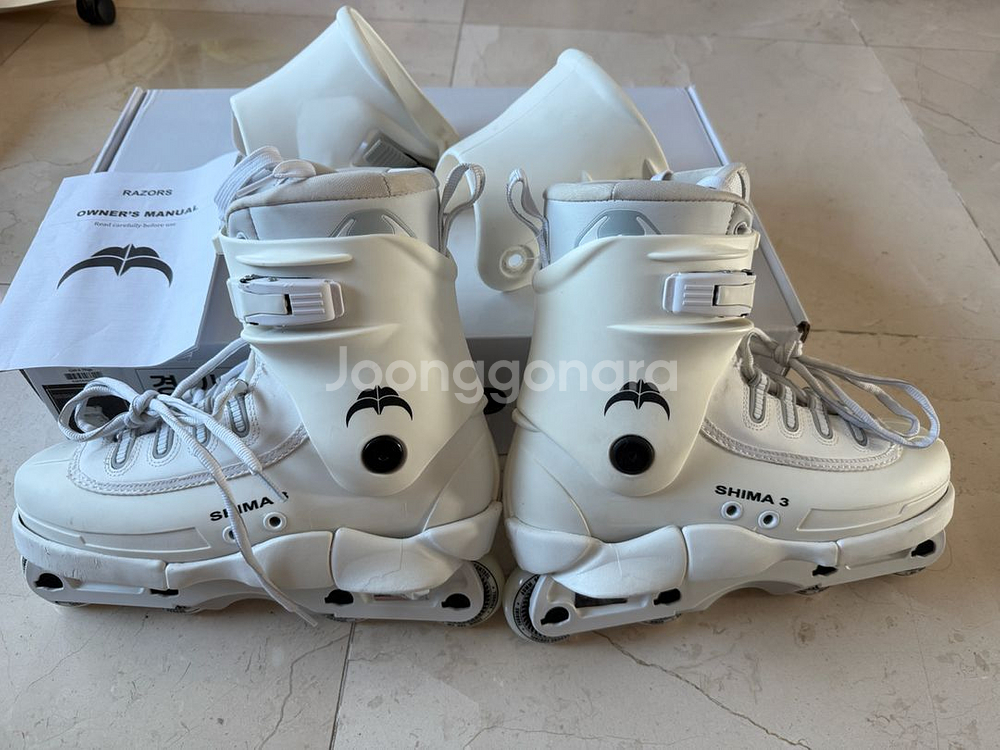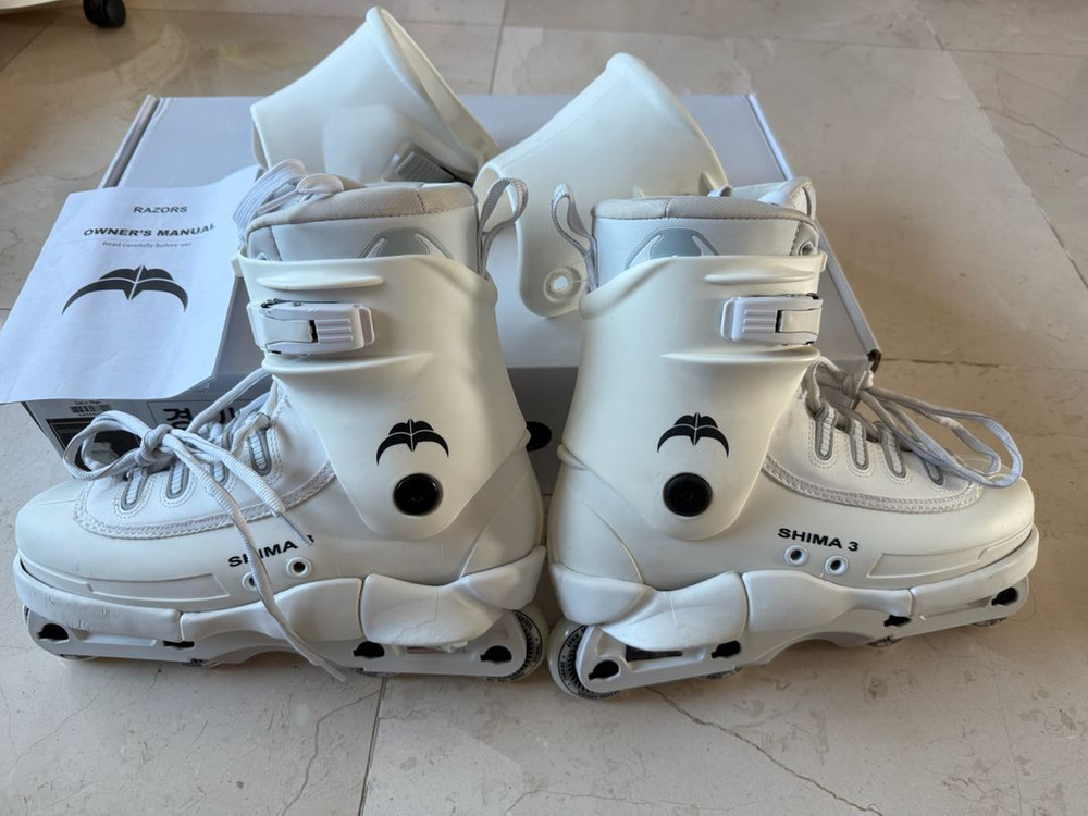 레이저 시마3 리마스터드 어그레시브 인라인 스케이트입니다. 개인적으로 화이트 스케이트중에 가장 예뻐보입니다. 탄탄하게 잘 잡아주고 반응성 좋습니다. 발길이 실측 258밀리인데 꽉잡아줍니다. 빅휠용도로만 사용했고 바퀴간섭을 없애기위해 사진과 같이솔플레이트 깎아냈기때문에 어그레시브 프레임과 휠외에도 프레임에 따라 100mm휠까지 사용가능합니다. 장착된 어그레시브 프레임과 휠은 한번도 사용하지 않았기 때문에 새제품입니다. 가동성을 높이기위해 v컷 컵으로 교체해놨고 오른쪽 부츠 안쪽에 교체시 볼트돌리면서 깎인 흔적 있고 전체적으로 사진상에 보이는 스크래치 외에 몇 번 타지 않아 사진과 같이 상태 아주 좋습니다. 용인 죽전 현금 직거래만. 구매후 환불 불가이니 신중히 고려후 쿨거래하실 분만 챗 주세요. 현장네고 정중히 사절하며 네고 문자 답변 못드림을 양해부탁드립니다.