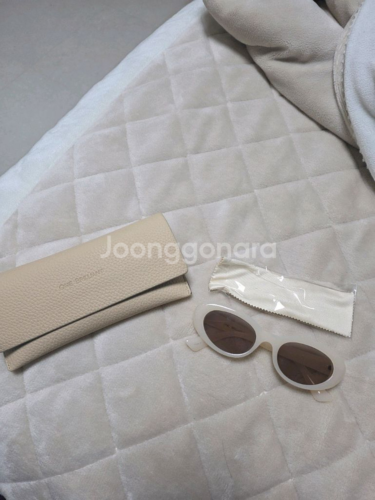 화이트 프레임 선글라스예요. 케이스와 닦기도 함께 드려요. 깔끔한 디자인으로 데일리 착용하기 좋을 것 같아요! 한번만 썼습니다