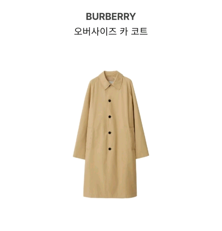 버버리 오버사이즈 카 코트입니다. - 색상: FLAX - 사이즈: 04 / US 2 / EU 36 - 가슴단면: 60센티 - 총길이: 114센티 오버핏이라 55~66정도 키 165센티 이상이신 분이 잘 어울릴 듯 합니다 실제 색감은 사진과 거의 동일하며, 목 부분,안감 버버리 체크 패턴이 있습니다 25년 1월 여주아울렛구매 딱 1점 있었고 구매 후 품절이었습니다 백화점에서 판매중이었던 모델입니다 새제품 : 시착불가,에눌불가 바로 구매하실 분만 채팅주세요 매장가 339만원 구매가 169.5만원 010-5843-5255 문자주세요