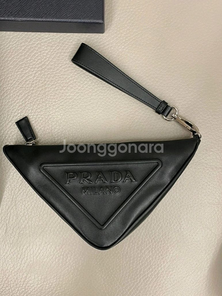 프라다 트라이앵글 클러치백 소재 소가죽 사이즈 가로 26센티 세로 14센티 너비 6센티 국내매장가 240만원정도 LF몰 190만원 22~23년도에 출시했던 모델입니다 리폼해서 크로스백으로 활용할 수도 있다고하니 참고하세요 (실제 크로스백 모델도 출시했었음) 양면으로 사용가능 블랙,화이트,그린, 옐로우 4가지 컬러로 출시했는데 블랙이 가장 빨리 품절됐습니다 신혼여행때 이태리-피렌체몰에서 직접 구매해서 세금 내고 가져온 제품입니다 가격인하 했습니다 010-5843-5255 문자주세요