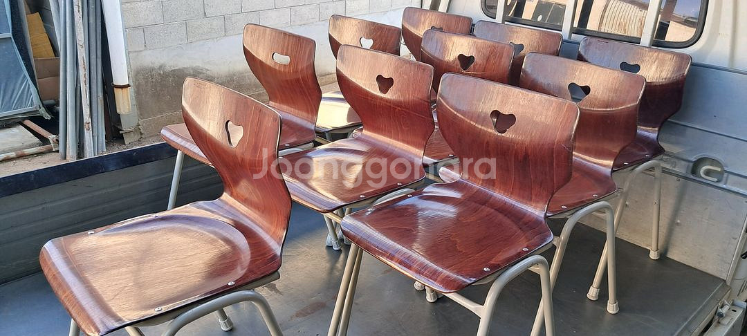 고급 나무로 만들어진 튼튼한 의자입니다. 등받이에 하트모양 구멍이 뚫려있는 디자인이 특징입니다. 개당 만오천원입니다 하남시 미사동 334-2 푸마풋살장 옆 사이공사 육칠팔구 01042046789