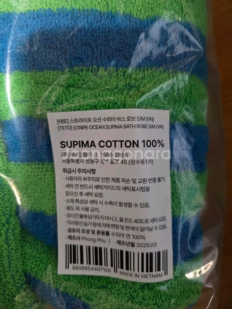 테토 수피마 바스 로브 S/M 미개봉 새상품 1개 99,000원 서울 사당역 직거래 가능하며 구매후 환불 불가 합니다