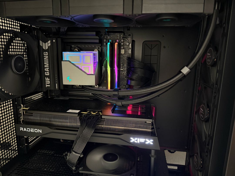고사양 데스크톱 PC 판매합니다 사양은 위에 사진과 같으며 저기에 추가로 삼성 980 ssd 1테라 박혀 있습니다 (총 2테라) 25년 3월에 구매했습니다. 구매당시 300넘게 주고 샀으며 현재 램값 및 ssd 가격 폭등으로 더 비싸진 상태입니다 경춘선 라인만 거래 가능합니다 rx9070xt는 rtx5070 ti와 동급이라 보시면 됩니다