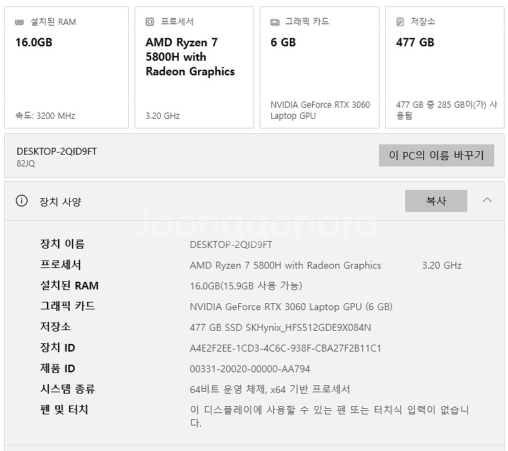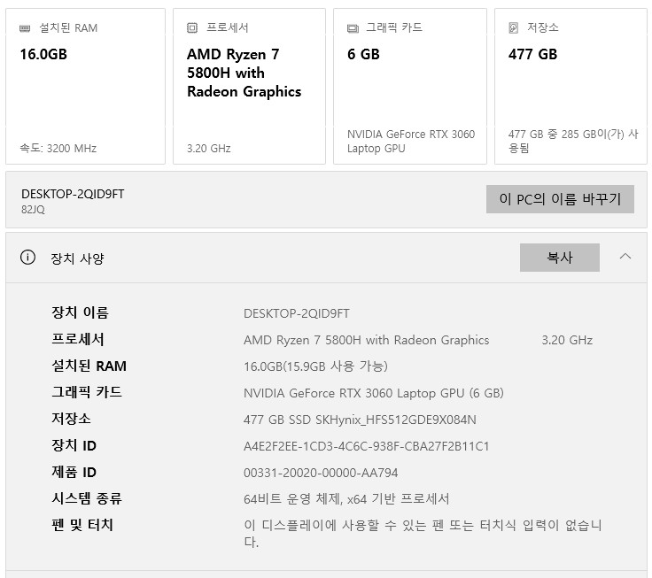 ✔ CPU : AMD Ryzen 7 5800H ✔ GPU : NVIDIA RTX 3060 (고전력) ✔ RAM : 16GB ✔ SSD : NVMe 512GB ✔ 디스플레이 : 16인치 QHD+ (2560x1600), 165Hz ✔ 모델명 : Legion 5 Pro 16ACH6H ✔ 배터리: 100% 성능 ✔ OS : 공장초기화 해서 드립니다. OS 따로없음 (현재 윈도우10) ■ 사용설명 - 발열/성능 문제 없음 - 키보드/액정/외관 큰 흠집 없음 - 배터리 정상 사용 가능 ■ 구성품 - 노트북 본체 - 정품 충전기 - 박스 O ■ 거래 - 직거래 평촌 - 네고 X - 중고 특성상 교환/환불 불가