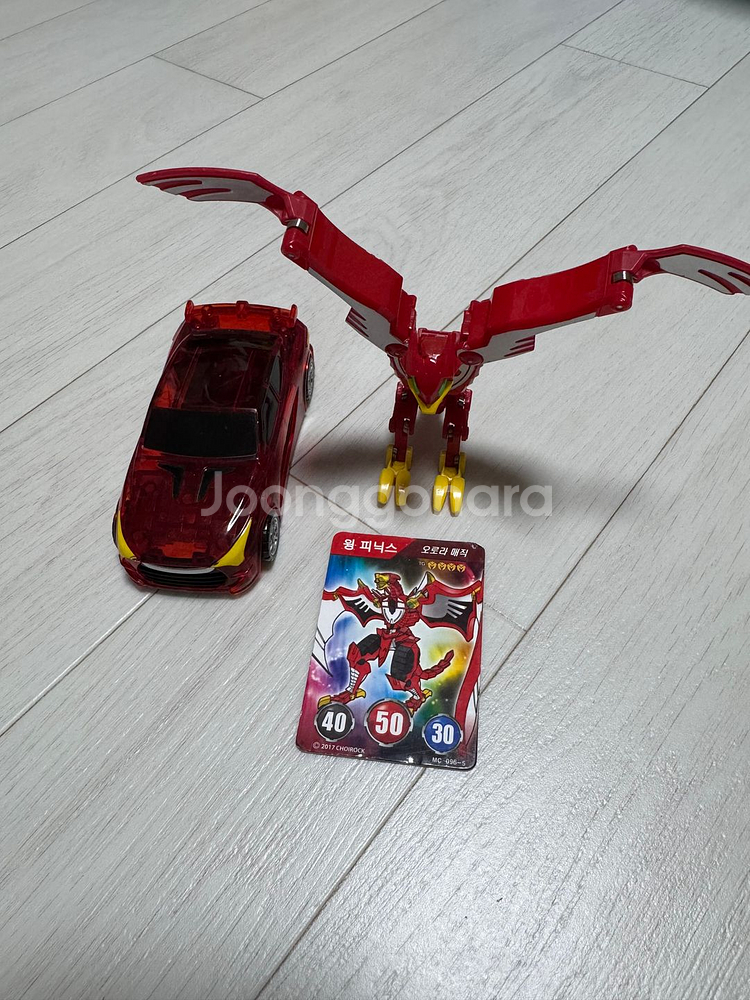 터닝메카드 윙피닉스 입니다. 파손없고 변신 잘 됩니다. 전용카드 1장 포함입니다.