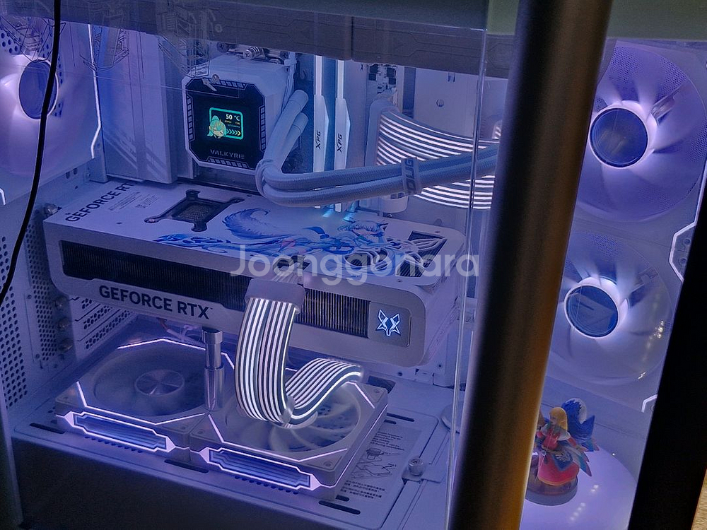 현재 문제없이 사용중인 컴퓨터 입니다. 구매시 포맷하여 드립니다. 현재 많이 오른 램과 ssd빵빵하게 넣어논 스펙이여서 대부분의 분들에겐 부족함이 없을거라 생각됩니다. 케이스는 전용 피규어 거치대를 따로 구매하여 달았습니다. 전원을 키면 빙글빙글 돌아갑니다. CPU:AMD 9800X3D 쿨러:발키리 b360 lcd 화이트 메인보드:GIGABYTE B850 AORUS ELITE ICE 메모리:ADATA DDR5-6000 CL30 LANCER RGB 화이트 32GB 2개(총 64GB) 그래픽카드:Manli 폴라폭스 RTX5080 SSD:삼성 980pro 1TB WD SN850X 2TB 솔리다임 P44 PRO 2TB 케이스:쿠거 FV270 RGB 화이트 파워:SuperFlower SF-1000F14XP LEADEX VII PRO PLATINUM 화이트 ATX3.1
