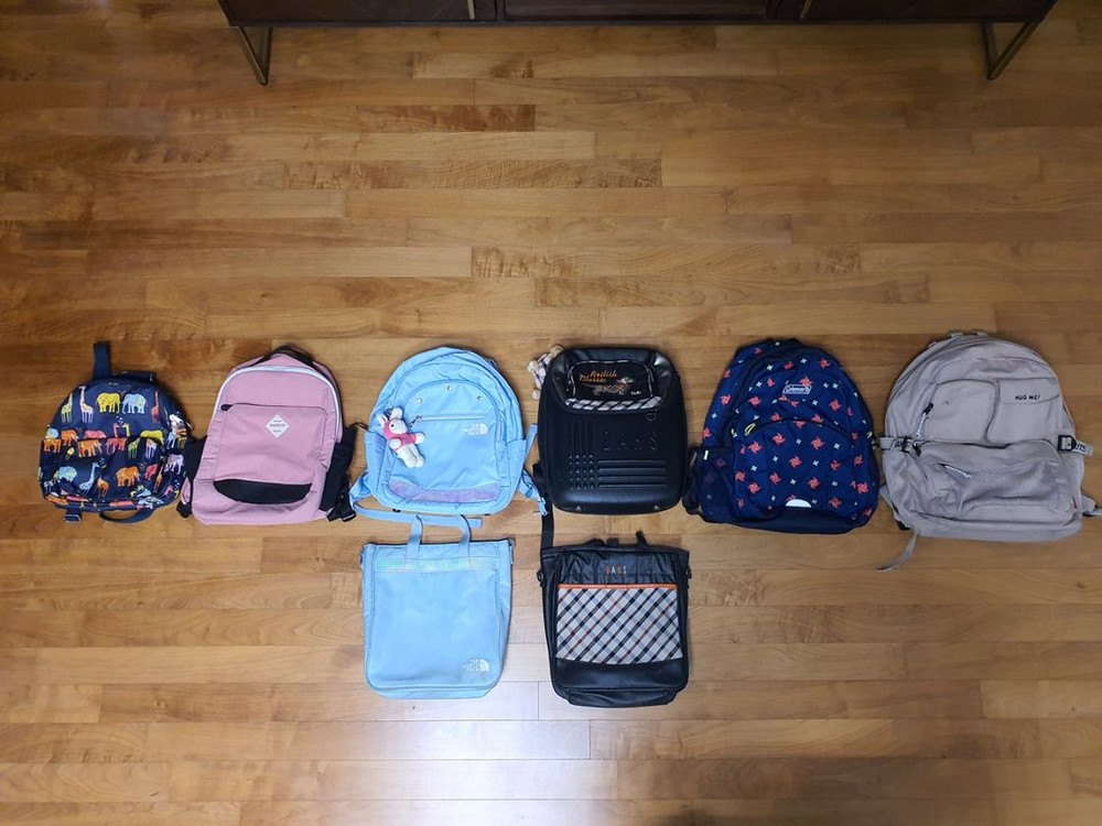 새학기 책가방 사진의 맨 왼쪽 1번부터 오른쪽 끝 6번까지 1번 가방 ( 초저학년 ) : 3,000원 2번 가방 HAZZYS ( 초등학교 ) : 판매완료. 3번 가방 NORTH FACE ( 초등학교 ) : 판매완료. 4번 가방 DAKS ( 초등학교 ) : 10,000원 5번 가방 COLEMAN ( 초중학교 ) : 판매완료. 6번 가방 PEANUTS ( 초, 중, 고 ) : 10,000원 일괄 구매시 20,000원