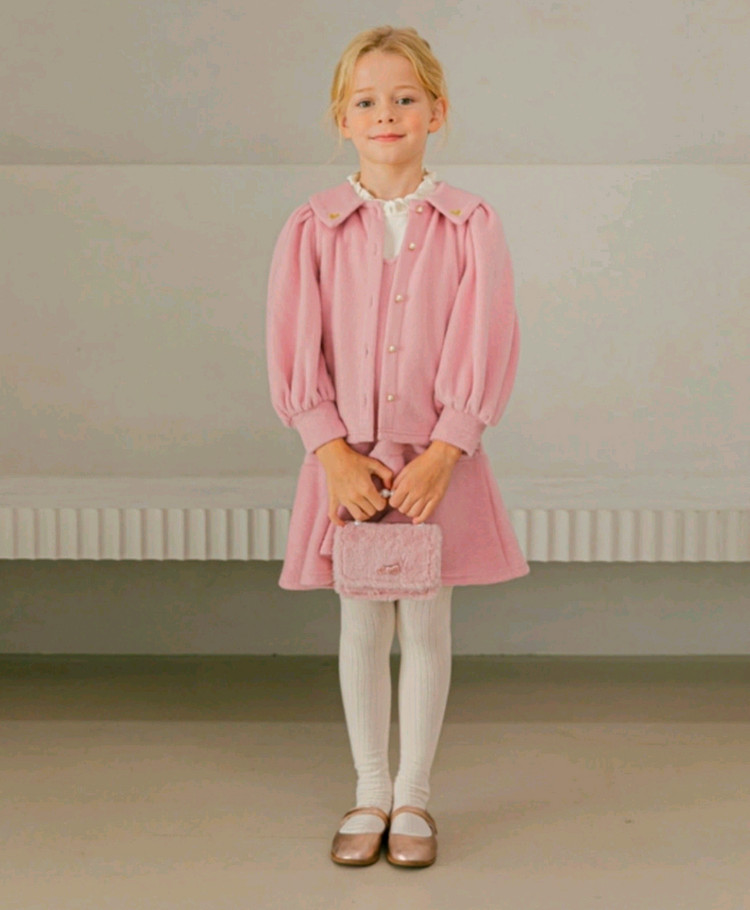 베베테일러밍크치마가디건 셋트 130 . 짧게 입는 디자인이에요. 모델컷처럼 입고 싶으면125까지 추천. 끝단 퍼지는 스타일. 소재가 밍크다보니 사용감 보여요. 겉기모. 오염은 없으며 소매부분 소재때문에 사용감 사진 확인하세요. 팔부분 통이 큰스타일이에요. 모델컷 사진이 실제컷과 가까워요. gs반택가능