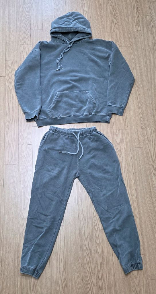 피그먼트 후드조거팬츠 상하 셋업 남여 공용 예쁜 피그먼트 차콜 색상이고 후드 상의는 기모 제품이고 하의는 기모 없는 제품으로 세트입니다 (상의) 가슴반품 - 66 총장 - 73 (하의) 총장 - 98 엉덩이반품 - 58 허벅지반품 - 29 상세 사이즈 확인해 주시고 착용 횟수가 많지 않아 특별히 고지할 부분은 없지만 예민하신분은 피해주세요