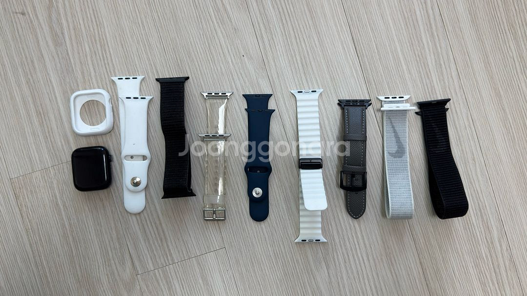 애플워치7 알루미늄 45mm GPS 버전입니다. 배터리 83% 초기화, 계정 삭제, watch앱 삭제까지 완료했습니다. 스트랩 다 드립니다. 정품도 섞여있는데 뭐가 뭔진 잘 모르겠네요. 노리턴 조건으로 택배 가능합니다. 직거래는 노량진 유한양행 근처 가능합니다. 판매 이후 반품은 어렵습니다.