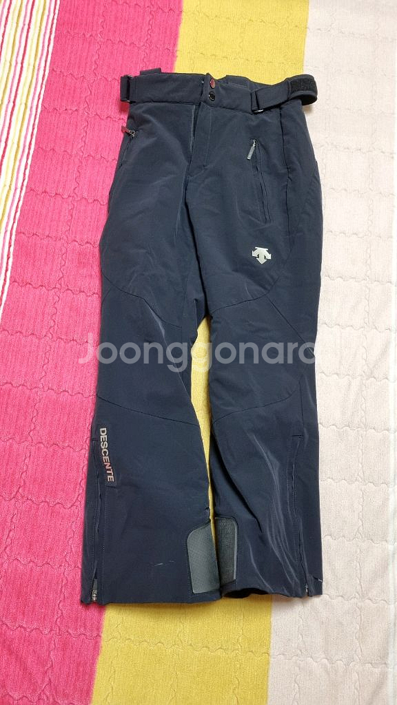 데상트 스키바지 팝니다. 남여 공용 딱 3회 착용인데 엣지빵이 생겼어요. 사이즈, 상태는 사진 참고하세요. 남녀 공용으로 기본형 스타일입니다. 문의 안 받습니다. 택포 12만원 010 4763 3354