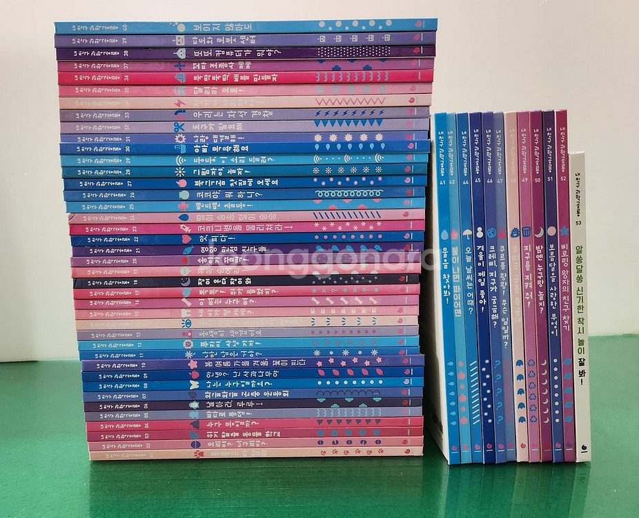 *전-53권. *개정판-2023년구입* **특AA급-진열수준에 가까운책~~펼쳐보지 못한 책들도 있어요** *43번(숲속을걸어요-구버전이고 번호는39번 입니다). *열두권(4.5.7.21.22.38.42.44.46.49.50.51)번-뒤풀이에 스티커 부착 했어요. *책기둥에 조금 빛바램 있어요~~나머지는 무결입니다~~사진3장 확인하세요~~ 코드-78