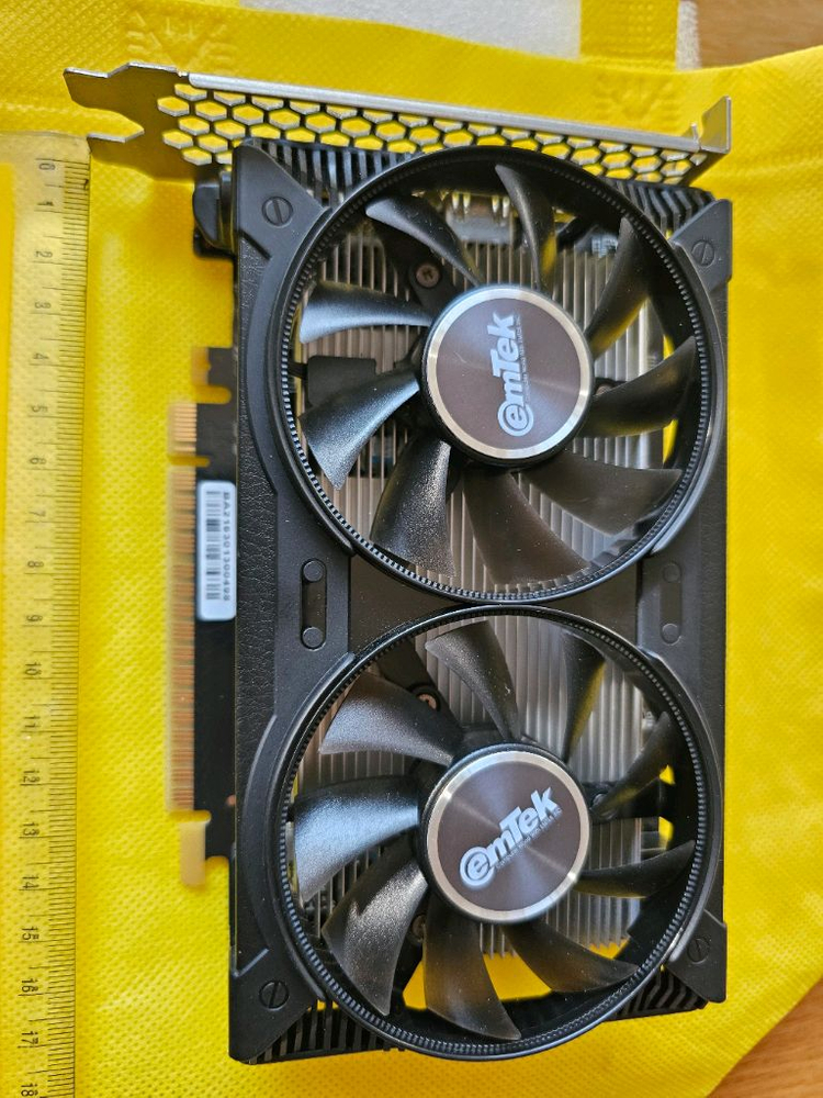 이엠텍의 GTX1650 4GB GDDR6 스톰 듀얼 미니 OC 모델 입니다 이제품의 특징은 GDDR6 메모리 장착으로 기존 GDDR5가 장착된 GTX1650 제품보다 4000MHz 향상된 1만2000MHz의 메모리 성능을 가지고 1725MHz에 달하는 부스트 클럭 을 적용하여 더욱 높은 성능을 제공합니다 사이즈가 작아서 어느 컴퓨터에나 장착 가능합니다 주기적인 관리로 상태 좋습니다 먼지도 안 보입니다