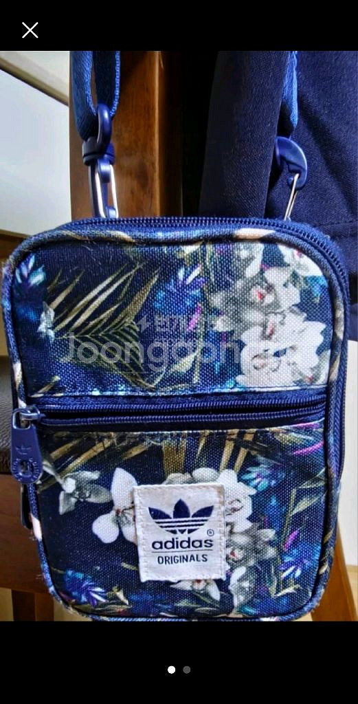 아디다스 오리지널스 로고가 들어간 예쁜 플로럴 패턴 크로스백이에요. 네이비 바탕에 골드 꽃무늬가 고급스럽고 상태도 깔끔해 보여요. 실용적이면서도 스타일리시한 디자인으로 데일리용으로 완벽할 것 같아요!
