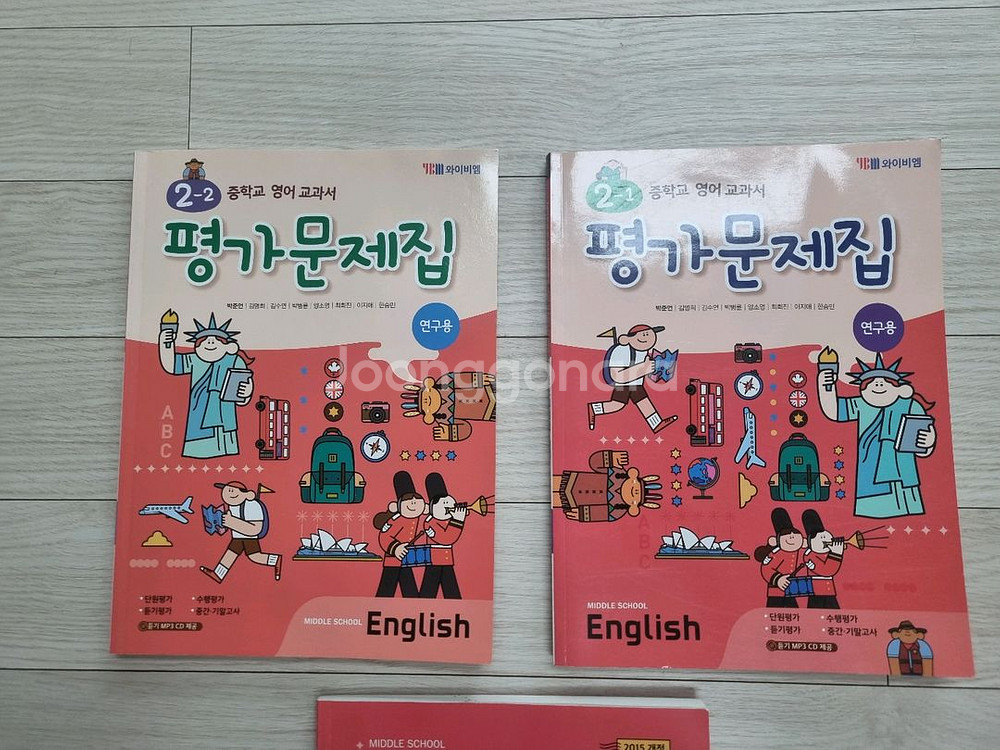 중학교 2학년 영어 평가문제집 나눔입니다. 시사 ybm (저자 박준언) 출판사 1) 2-1 : 손 안 댄 새 책, 2) 2-2 : 한 장 푼 새 책이나 다름없는 깨끗한 책 부록으로 수록된 cd 도 뜯지 않고 그대로 있어요. 3) 수행활동 자료집 : 수행평가 대비용 반값택배: (세븐일레븐) 2천 타 반값택배 : 3천 일반택배 : 3,500