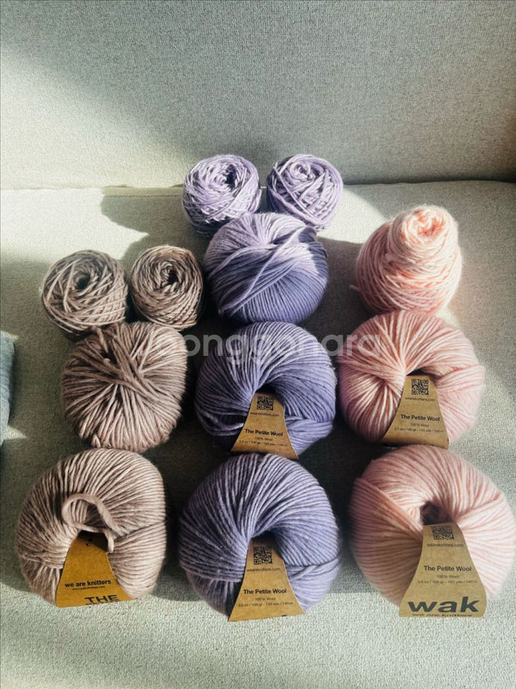 다양한 컬러로 구성되어 있어서 여러 작품 만들기에 좋을 것 같아요. 깔끔한 상태로 보관되어 있습니다. 색상은 사진으로 확인 부탁드려요 🙂 • 핑크 (Millennial Pink): 300g • 라벤더 (Digital Lavender): 390g • 보라 (Spotted Mauve): 250g https://weareknitters.com/collections/petite-wool-skeins?page=2 배송비 일반 3500원 | GS반값 CU 알뜰 2500원 • 교환·환불 불가