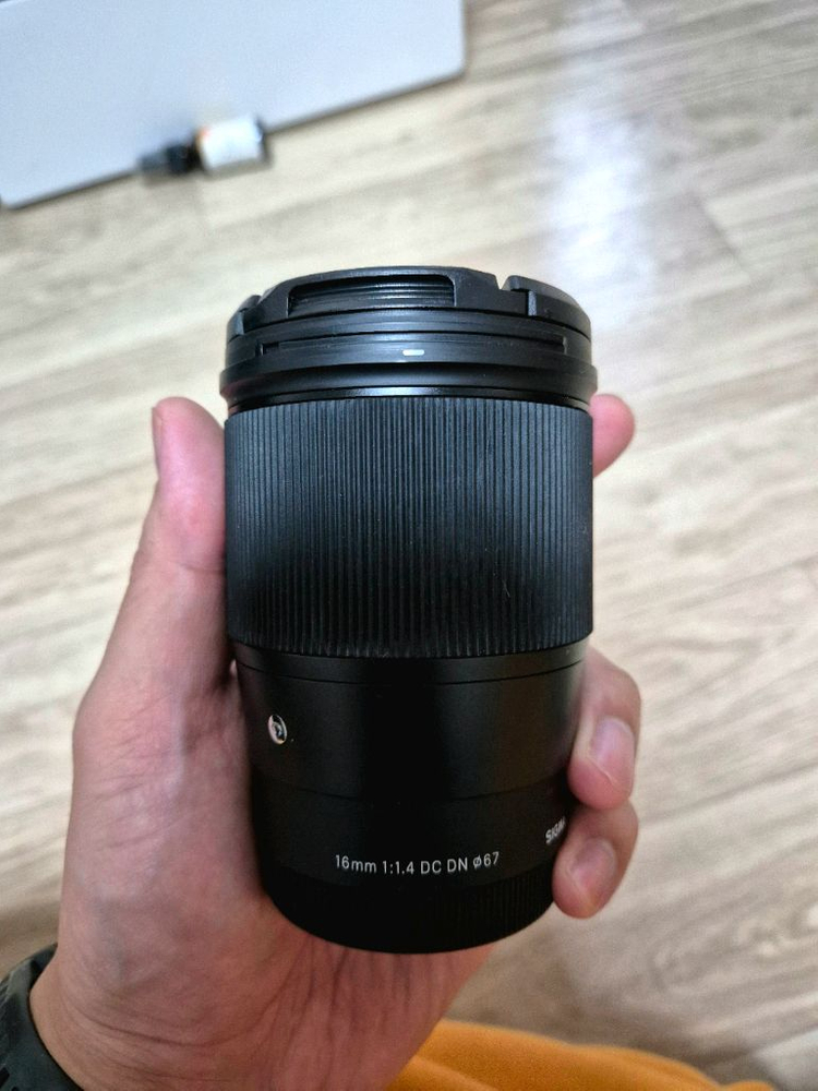 sigma 16mm F1.4 단렌즈입니다. 외관 상태 양호하고 렌즈캡도 함께 드려요. 인물 촬영이나 일상 스냅용으로 좋은 렌즈예요!