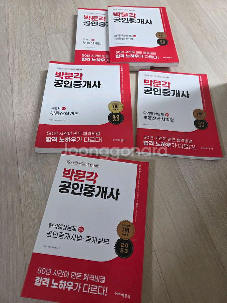 개인정보(거래정보)를 주고받는 행위는 사기에 노출될 수 있으므로 즉시 중고나라로 신고해 주세요박문각 공인중개사 수험서 모음입니다. - 공인중개사 시험 대비 교재 - 부동산학개론, 민법, 부동산공법, 부동산세법 등 - 한권당 가격 13,000원(희망하시는 책들 문의주세요)
