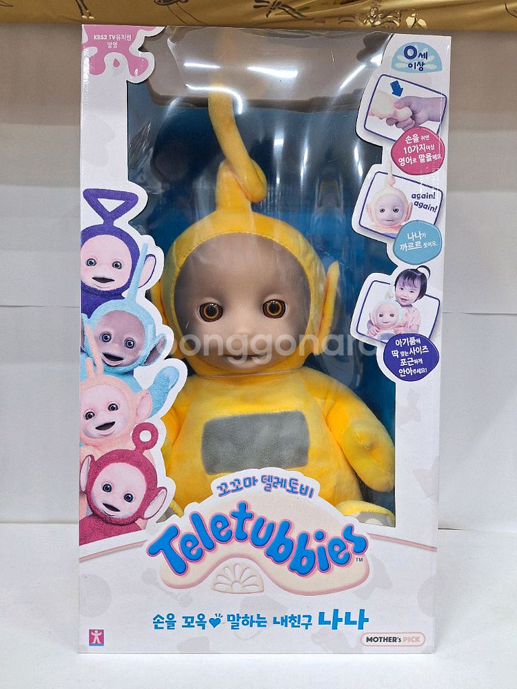 개인정보(거래정보)를 주고받는 행위는 사기에 노출될 수 있으므로 즉시 중고나라로 신고해 주세요미개봉새상품 말하는 텔레토비 나나 판매합니다. 손을 잡아주면 10가지이상 영어로 말하는 인형이며, 아이가 안아주기에도 푸근한 사이즈의 인형입니다.