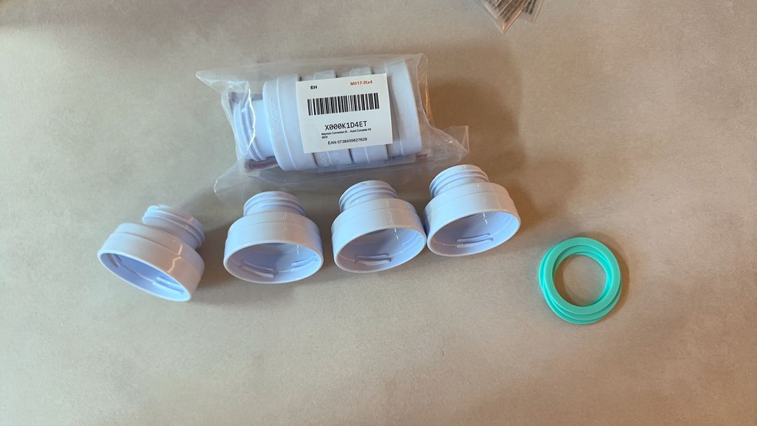 젖병에 연결해서 사용하는 어댑터 4개와 실리콘 링입니다. 새 제품이며, 젖병과 호환하여 사용 가능합니다. 마더케이 일회용 젖병에 내로우넥 연결해서 사용할 수 있습니다. (닥터브라운, 그린맘아이쏙, 디프락스 가능) https://m.blog.naver.com/jyn8929/223039055744 https://m.blog.naver.com/kyeongja_/223981827383 사용법은 여기 참고해주세요. 외출하며 쓰려고 했는데 휴대용 젖병 사놓고도 유리 젖병 들고 다녔었네요 ㅎㅎ..