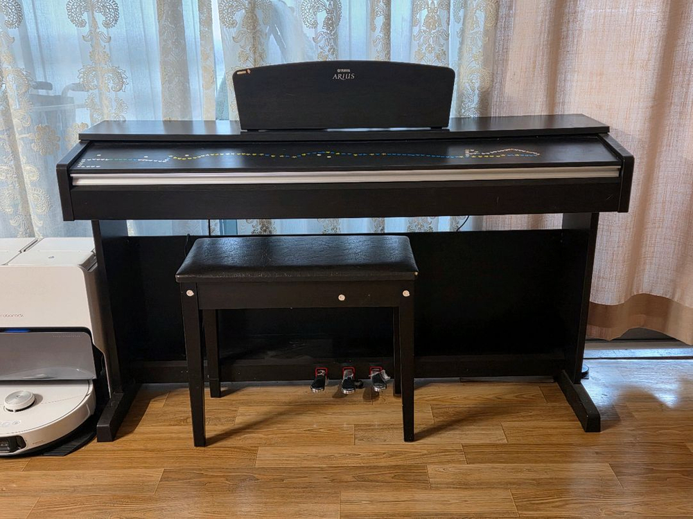 야마하 Arius YDP-141 디지털 피아노. 집에서 사용했고 생활기스는 있지만 잘 사용했습니다. 7년전쯤 새상품 구입했고, 1년 피아노 배우다가 그만둬서 이후 거실에 두기만 했어요. 의자 포함이고 무겁지않아 혼자서 들수도 있지만 부피가 있어 두명이 운반해야 될거 같아요. suv 뒷좌석 눕이면 들어갈거 같습니다.쏘렌토급. 네고문의는 사절합니다.
