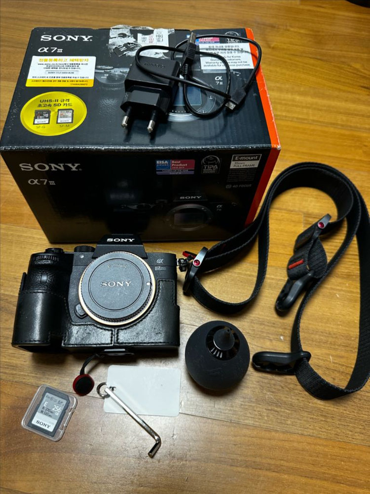 애가 커서 사용을 안하게 되네요 소니코리아 정품 a7m3 바디 풀박스 (정품 아답터 포함) 8500 컷 입니다 여행때만 사용해서 컷수가 적어요 셔터박스 교체 안했습니다 수리내역 전혀 없습니다 기스 나 프린팅 지워짐 전혀 없이 a급 입니다 구성품 전부 포함입니다 소니 sf- E256 sd카드 (개봉만 하고 컷수 확인차 한컷 찍었어요 ) 13만 상당 픽디자인 슬라이드라이트 스트랩 10만상당( 사용을 별로 안해서 상태 a급 입니다 ) 픽디자인 카메라 가방 (3분할 파티션으로 렌즈두개 수납됩니다 구형 이지만 깨끗해요) 글린트 가죽 속사케이스 (사용감 있습니다) 네고 없이 구매할 분만 문의주세요 제품 특성상 직거래 선호합니다