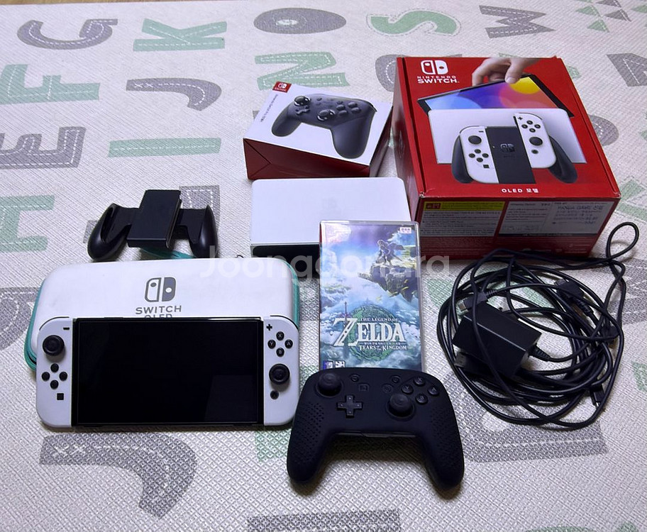 제품:닌텐도 스위치 OLED 컨트롤러의커버 씌워져 있고 젤다 왕국의 눈물칩 있습니다 (칩은 2025년 8월쯤 구매) 개별판매가능 (₩ 48,000원) 구매는 2022년 12월 닌텐도 케이스도 있는데 조금 사용감있어요 닌텐도 사용감 적고, 상태좋아요 아이가, 별로 안해서, 보관하다가 판매합니다. 작동 잘되고, 칩은 몇번사용안한 새제품입니다. 액정강화유리 붙인지 몇개월안되서, 그냥사용하셔도 됩니다.(컨트롤러 커버들도, 몇개월전에 구매해서, 상태좋아요) 직거래: 마포구청역4번출구 인근 택배 : 4,000원 (착불입니다.)