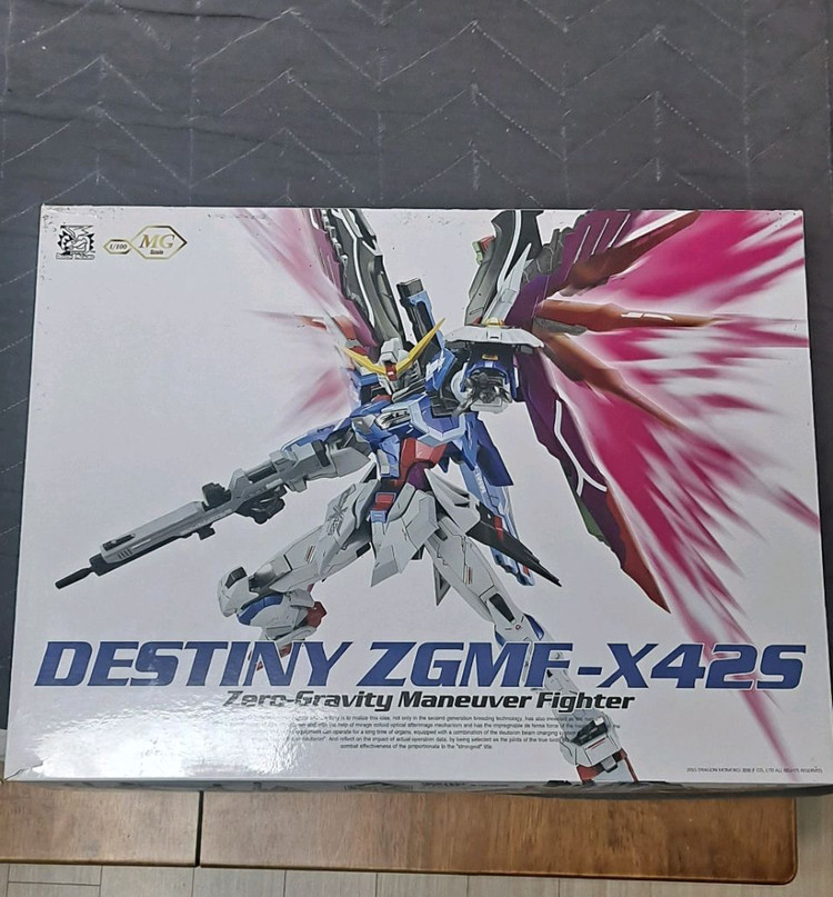 드레곤모모코 메탈필드버전 MG 데스티니 ZGMF-X425입니다. 186,000원에 구입하였고, 4번 사진 빛의날개 추가 구매 하였습니다. 얼마 였는지는 기억이 안나네요. 프라탑 정리하면서 판매하게 되었습니다. 박스는 살짝 까진데는 있지만 양호한 편입니다. 빛의 날개는 그냥 드립니다. MG 건담 몇개 더 팔고 있으니 구경들 오세요. 중고거래 특성상 물건에 큰 하자가 없으면 교환, 환불은 불가합니다.