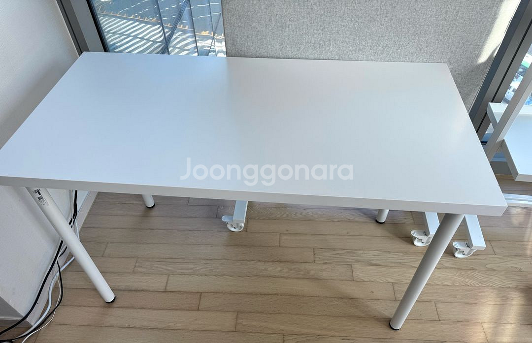 LAGKAPTEN 락캅텐 / ADILS 아딜스 책상, 화이트, 120x60 cm 정가 59,900 + 배송비 10,000원 별도 = 총 69,900 판매가 40,000 몇개월 전에 구매했던 제품이고 한쪽 옆면에만 살짝 찍힘 있고 사진보시면 아시겠지만 전체적으로 상태 엄청 깨끗합니다. 용산 직거래 가능합니다.