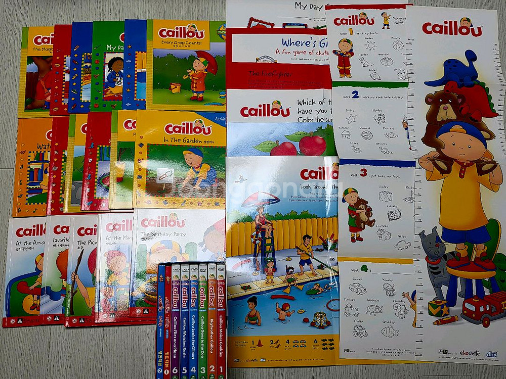 까이유 페이퍼북 17권 (스티커북 스티커 일부사용) 포스터, cd, dvd 포함 Leap Frog 9권 (cd, dvd 포함) 부담없이 즐기면서 영어 노출하기에 정말 좋은 영어 원서입니다. 책과 함께 영상과 음원도 함께 활용하면 효과만점~ 큰 도움되실거예요 ^^ 무료택배로 보내드려요~