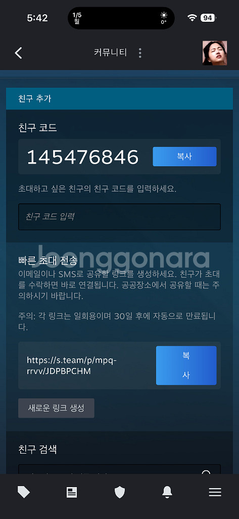 개인정보(거래정보)를 주고받는 행위는 사기에 노출될 수 있으므로 즉시 중고나라로 신고해 주세요스팀월렛 5~6만원 정도 삽니다 게임 선물식으로도 거래함다 비율은 80퍼 채팅 주십셔 친구코드 145476846