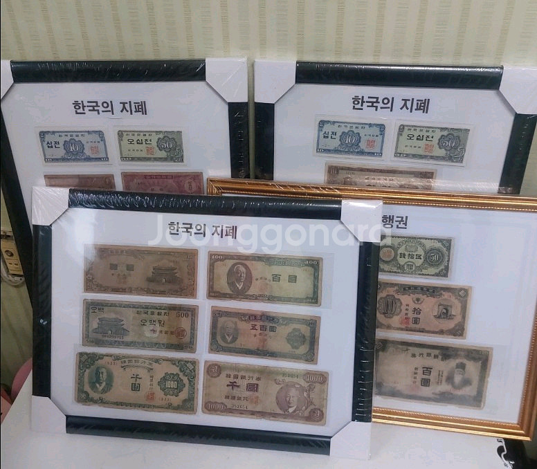 일제시대부터 1970년대까지 우리나라에서 사용하던 옛날돈입니다 모두 사용하던 지폐들이라 구김과 훼손 볼펜 글씨도 보입니다 A4 사이즈 46/35cm입니다 벽에 걸거나 탁상위에 두셔도 좋고 연말에 선물하셔도 좋습니다 1번 25만원 2번 10만원 3번 50만원 4번 30만원 6번 6만원 7번 8만원 대량 주문 가능하구요 구입하시면 2016년 화폐 도감 1권 드립니다 무료배송해 드립니다 010 2534 5031