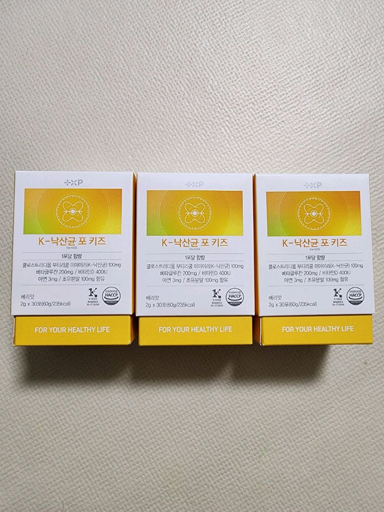 k낙산균 포 키즈 유산균 새상품입니다~ 유통기한은 사진처럼 27년 3월 6일까지이구요 3통 택포 8만원에 드려요~~ 하실분 챗주세요!