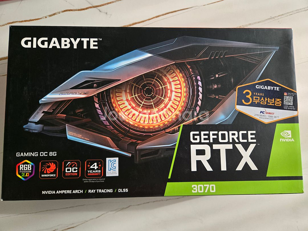 - 상품명(브랜드) : GIGABITE - 모델명 : 3070 - 구매 시지 : 모름 - 사용기간 : 모름 - 하자 여부 : 일부분 부식 서멀 재도포 작업 완료한 제품입니다~ 박스와 본체 모두 깨끗한 상태이며, 게이밍용으로 최적화된 고성능 그래픽카드입니다.