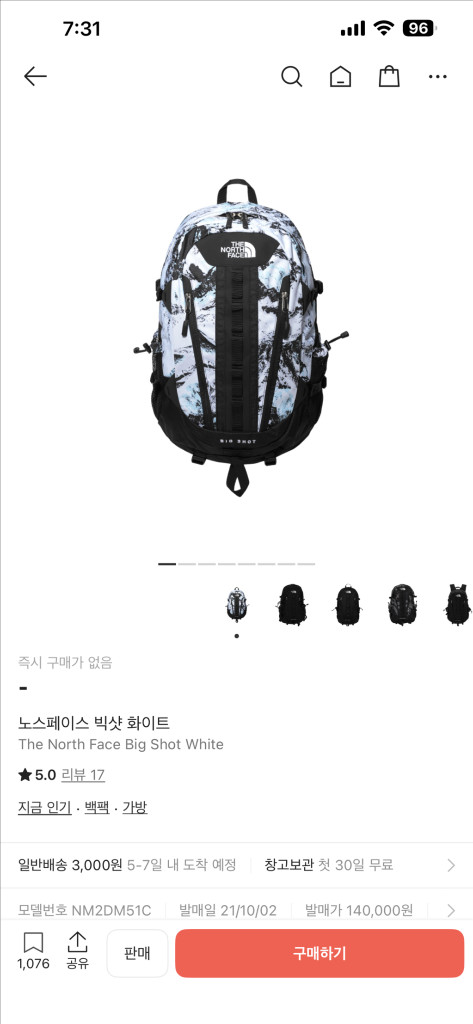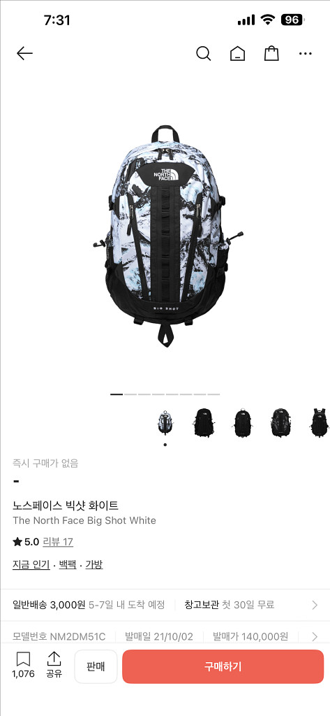 개인정보(거래정보)를 주고받는 행위는 사기에 노출될 수 있으므로 즉시 중고나라로 신고해 주세요노스페이스 빅샷 화이트 컬러 백팩이에요. 새 제품으로 비닐포장 상태 그대로 판매합니다. 크림구매후 보관만했습니다 택은크림구매때부터 없더라구요 크림구매인증 가능합니다