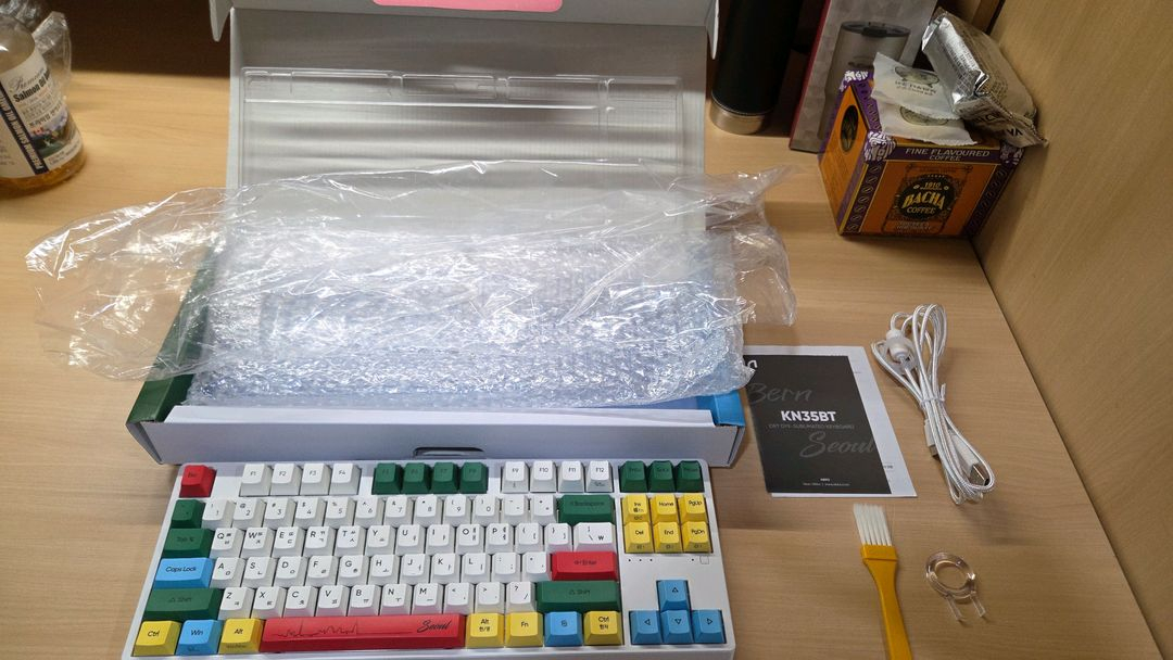 앱코 KN35BT TKL 8K 저소음 블루투스 유무선 키보드 서울, 무접점 구매년도: 24년 12월 사용 빈도 : 신동품 (거의 사용x) 팜레스트 포함 풀박스이며, 광진구 광나루 장신대 직거래 택배가능 택배시 5천원 추가
