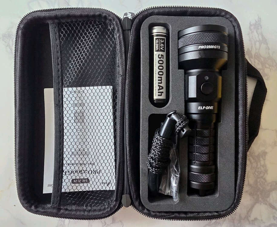 개인정보(거래정보)를 주고받는 행위는 사기에 노출될 수 있으므로 즉시 중고나라로 신고해 주세요ELF-DIVE PRO2500GTS 다이빙랜턴 수중랜턴 해루질랜턴 ELF 21700 pro 신품배터리 1개 포함 미사용품 신품