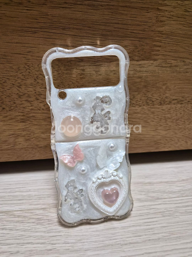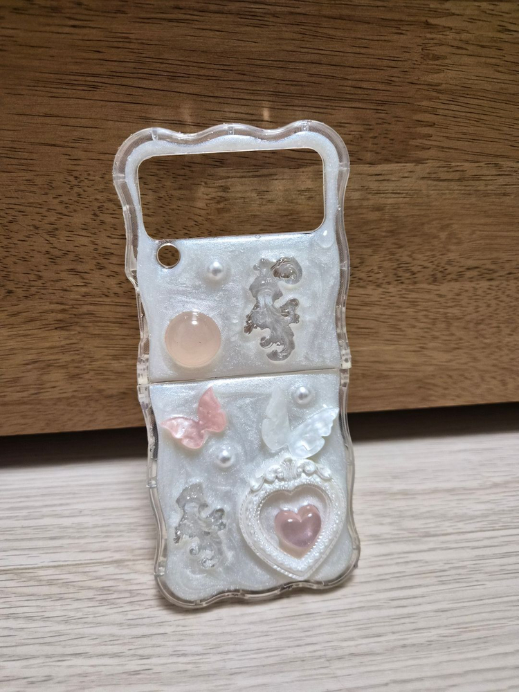 폰케이스 삼성 갤럭시 Z 플립 4 판매합니다 기종을 잘못 골라서 판매합니다 한번도 안 쓴 새거입니다 부드럽고 귀여워요! 키링까지 달면 완전 사랑스러움
