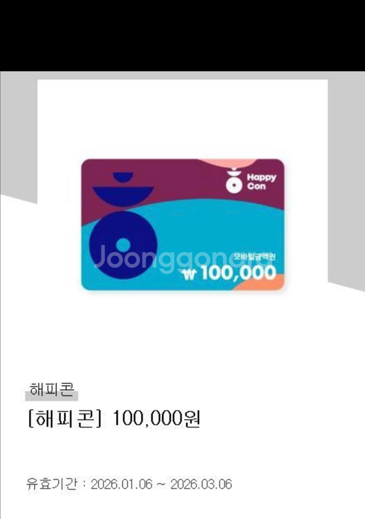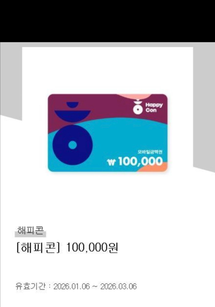 개인정보(거래정보)를 주고받는 행위는 사기에 노출될 수 있으므로 즉시 중고나라로 신고해 주세요해피콘 10만원권 판매합니다. 유효기간이 2026년 3월이고 다같이 외식하기 좋아요. 잔액 관리할 수 있어서 3개월동안 나눠사용하기도 좋아요.