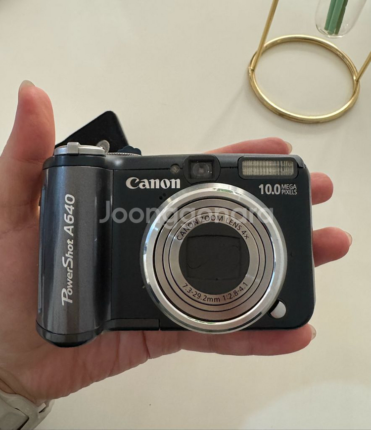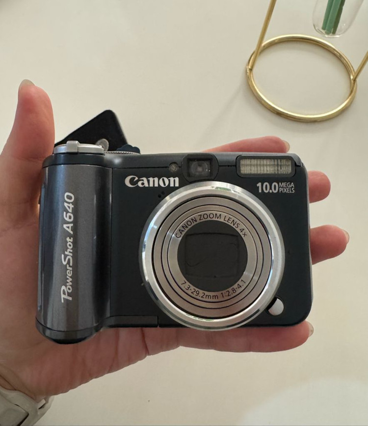 캐논 파워샷 A640. 디지털카메라 사용감은 있지만 정상 작동하는 상태입니다. 기능에는 문제없어요 세월의흔적만... 빈티지사진느낌으로 좋아요. 셀카용으로도 좋아요. 사진참고해주시고 고무홀더부분 안닫히는데 사용하는데는 지장없어요. 직거래 서울 신촌이나 그부근 김포사우동 그부근 다가능합니다