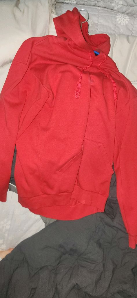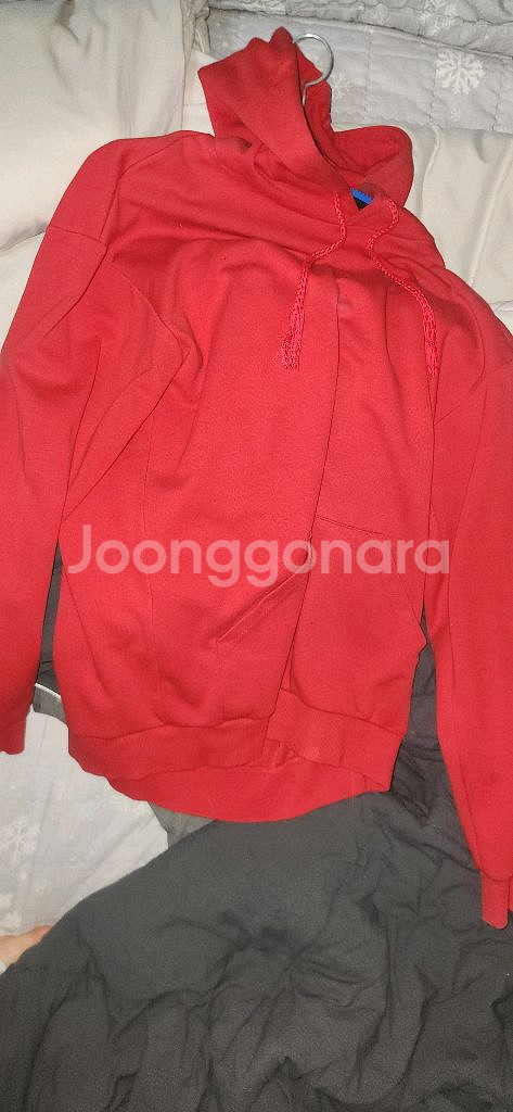 빨간색 후드티 판매합니다. 겨울에 가끔 입는거 빼고는 착용횟수는 많지 않습니다. 사이즈는 110입니다 첫 구매당시 배송료포함 26000원 하던 제품이었습니다. 가을, 겨울에 입기 좋은 두께감이에요. 주머니쪽에 바느질한거 빼고는 사용감 거의 없습니다.