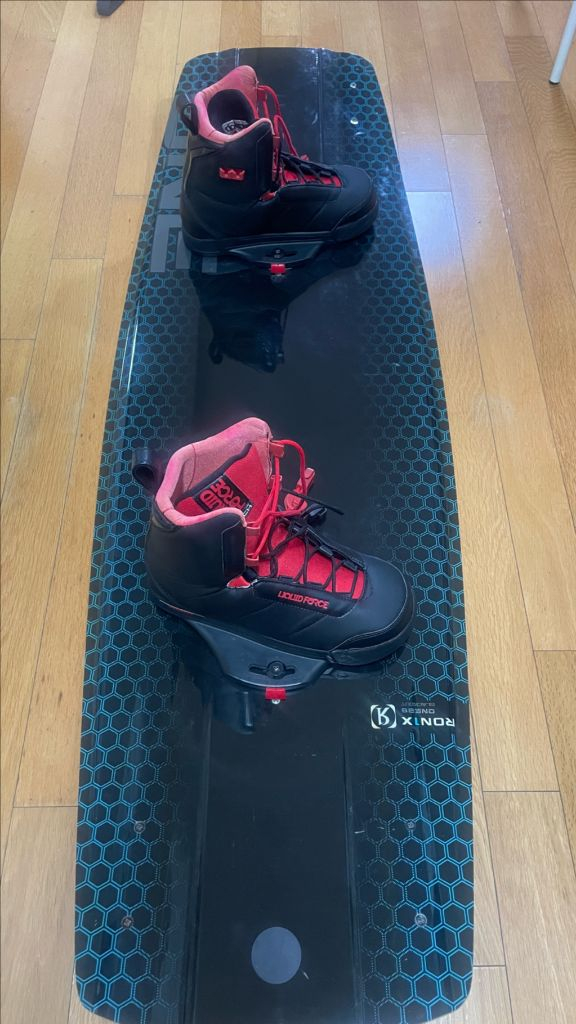 Ronix 웨이크보드 블랙아웃138 Liquid Force 바인딩 세트 판매합니다 바인딩은 Liquid Force HTCH 사이즈는 USA6-8사이즈이고 거래는 신논현역 근처에서 직거래만 해요